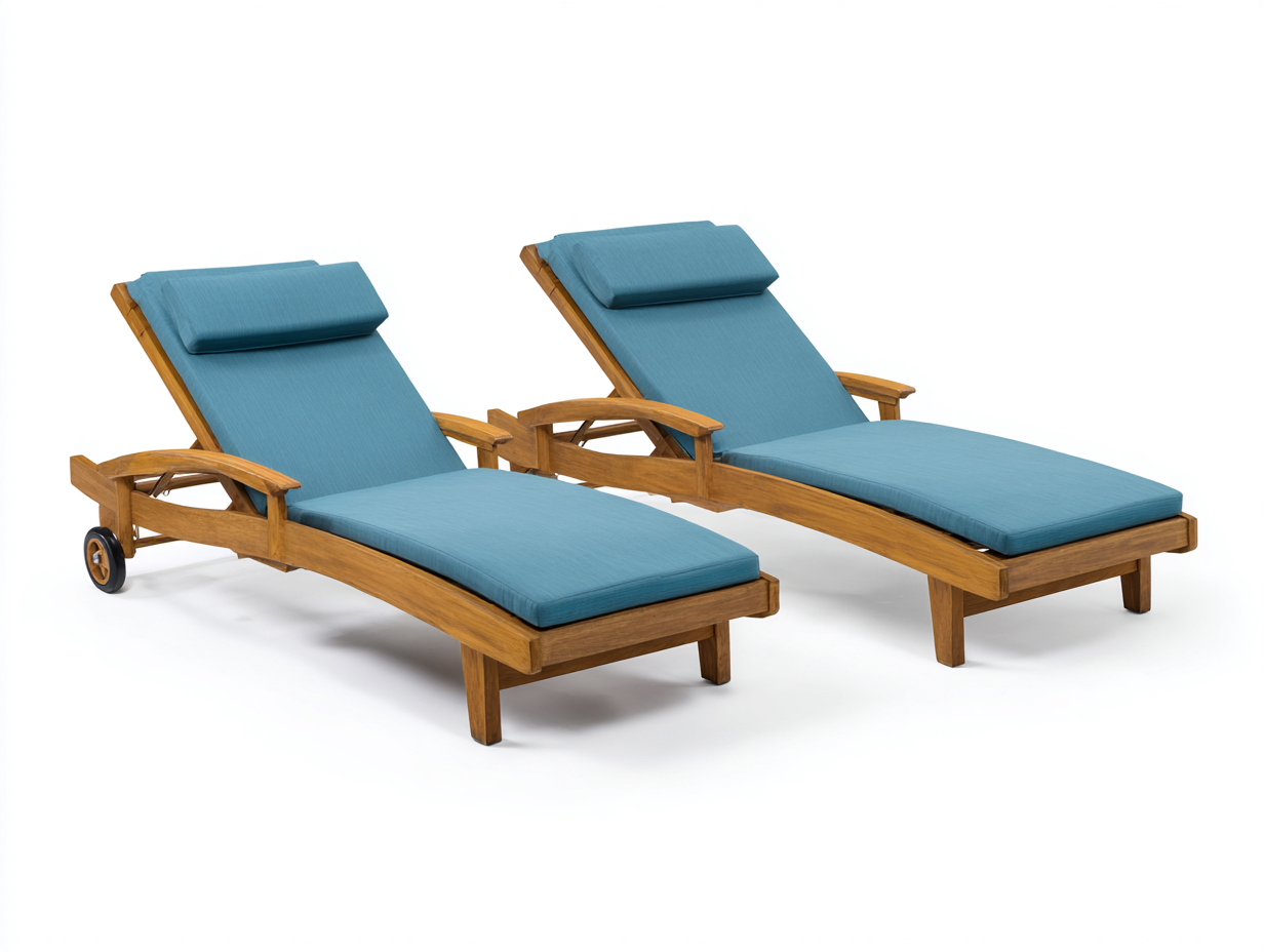 Bain de soleil (lot de 2) en bois 200x70x33 cm - bleu clair - avec roulettes pour jardin