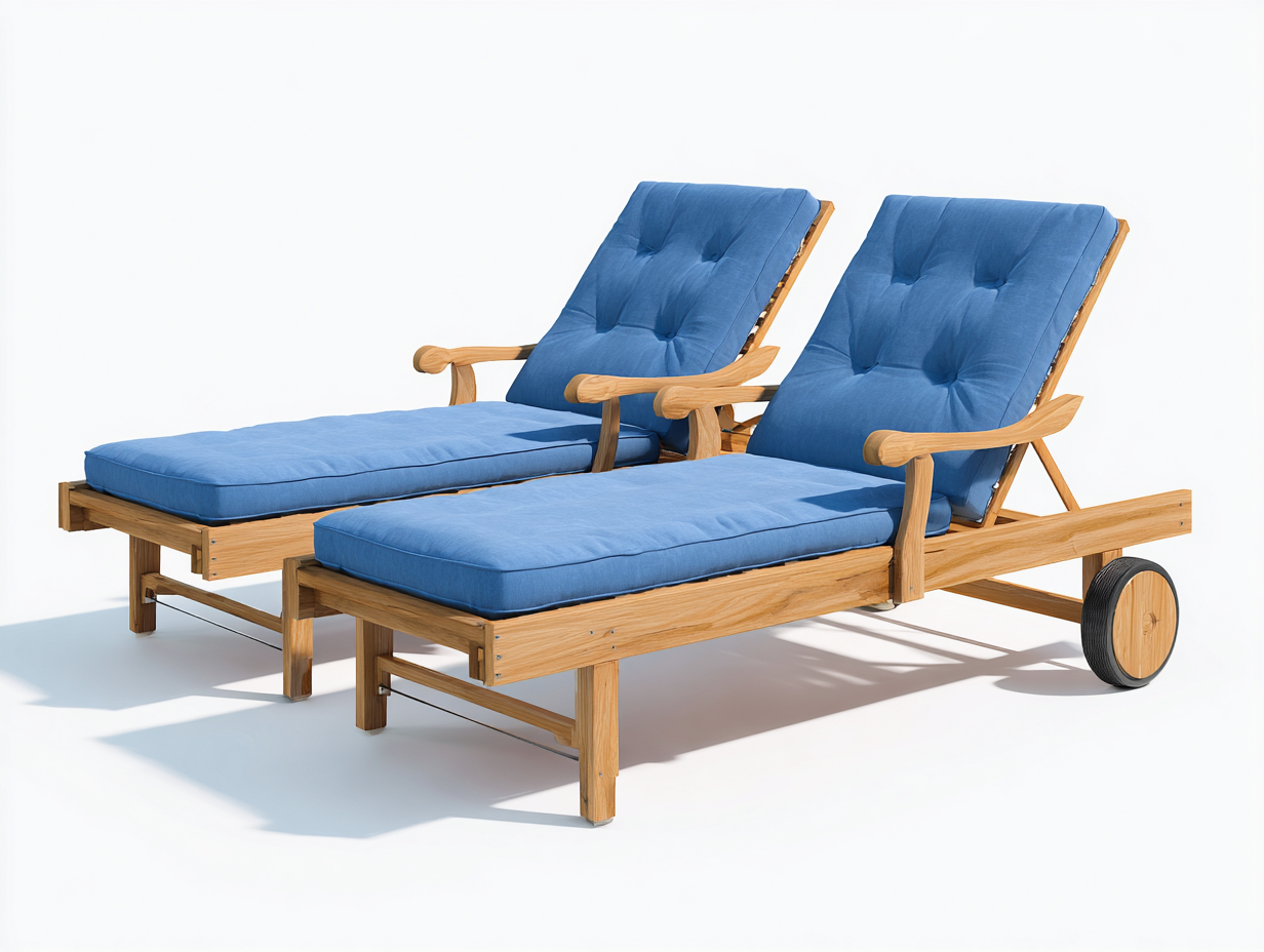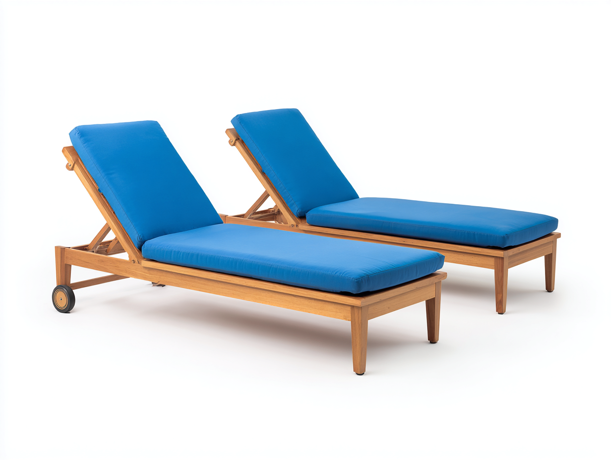 Bain de soleil (lot de 2) en bois 198x68x34 cm - bleu - avec roulettes pour extérieur