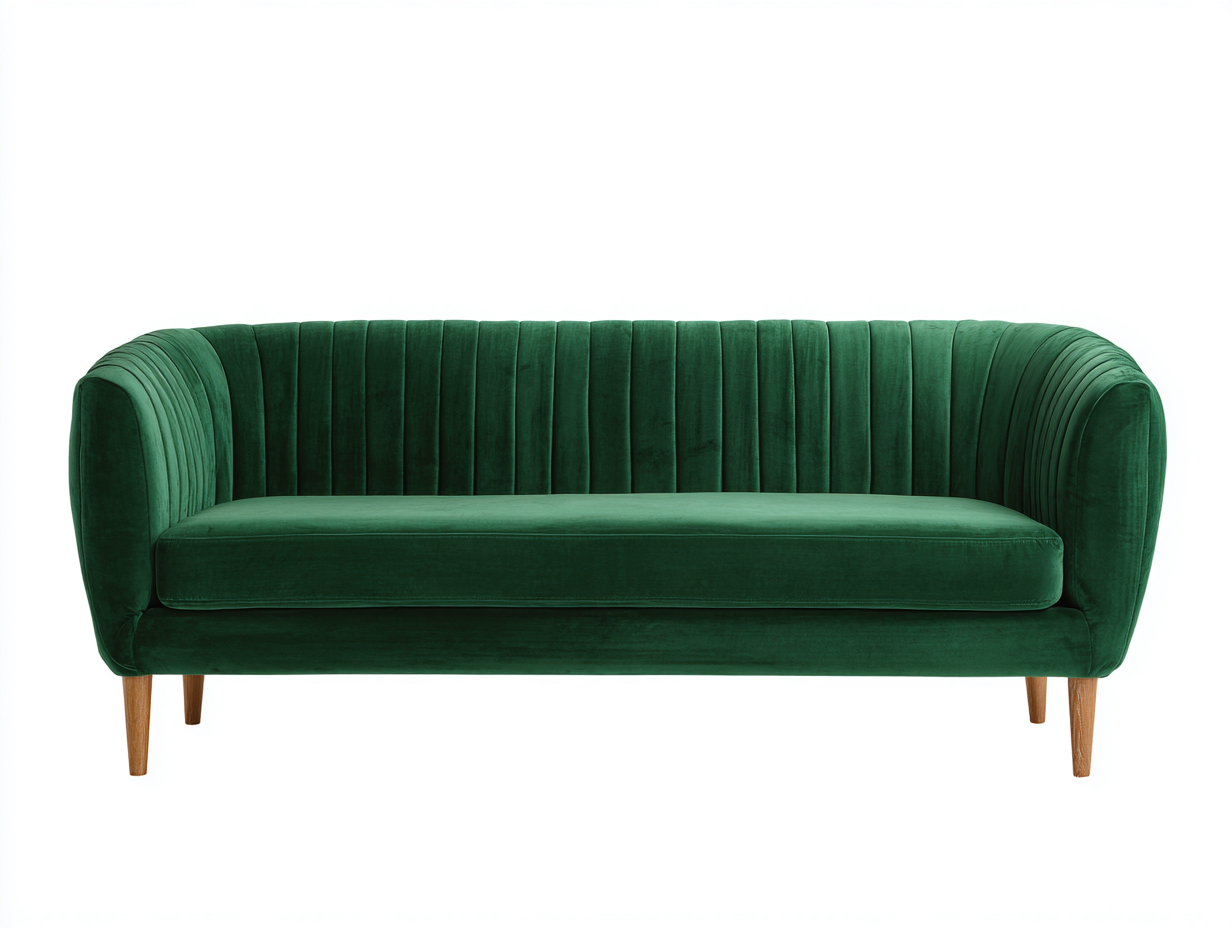 Revêtement en velours de couleur vert, structure stable et finitions soignées.
